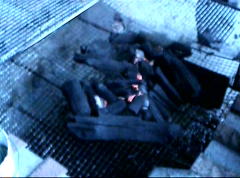 火おこしはバーベキュウの楽しみの一つ。しかし、さっきの雨で炭も燃料も湿ってしまい、なかなか火がつかない。なるべく小さな木炭を集めて、同じ場所を集中的に根気よく加熱させた。火のついた木炭を一カ所に集め、空気を送る。火おこしの達人がいてくれてよかった。