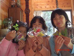 風にそよぐ一面のススキ。美しさに感動したり、豊かな自然がくれた栗やきのこ、あけびなどの山の幸をみつけては歓声をあげた。こども達は里山の人々が昔からしていた質素な生活の中に、なつかしい宝ものを発見したようだ。