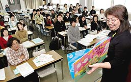 この日は出版文化産業振興財団の読書アドバイザー、天野眞理さん(46)が読み聞かせを実演しながら、絵本の選び方や読み方のこつを助言。