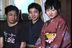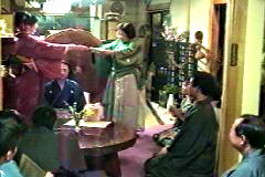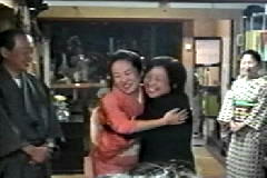 着物を着せてもらって、おひな様のように上本先生と並んだ塾長。